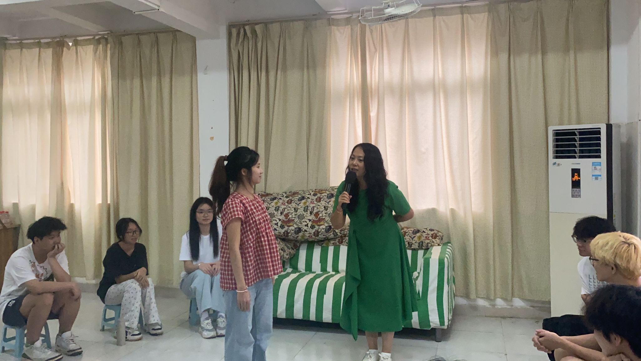 主讲教师劳慧瑜以独特姓氏与趣味英文名展开自我介绍,迅速点燃现场热情。她倡导 "用中学、玩中学" 的理念,鼓励学生将课堂所学灵活运用于班级活动设计,为后续实践埋下伏笔。