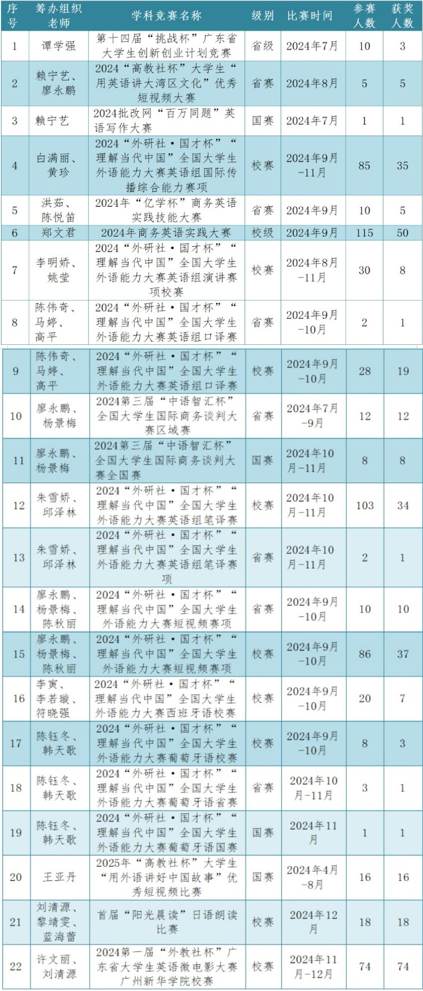 图为2024-2025学年第一学期外国语学院学科竞赛负责名单及获奖情况
